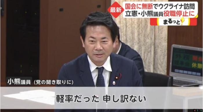 中新网5月11日电 据日本富士新闻网报道,日本立宪民主党籍众议员小熊慎司近日未经国会允许私自进入乌克兰,遭到处分。