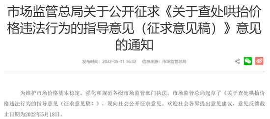 此外,《征求意见稿》还提出,监管部门可以根据本意见,制定具体实施意见。市场监管部门发现经营者哄抬价格违法行为构成犯罪的,应当依法移送公安机关。