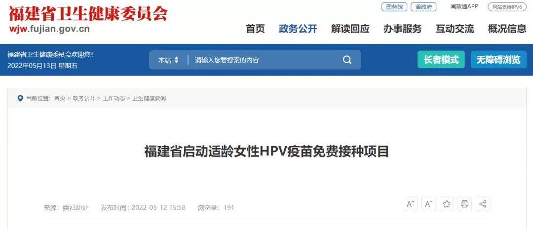 本文标题: 福建启动适龄女性HPV疫苗免费接种项目