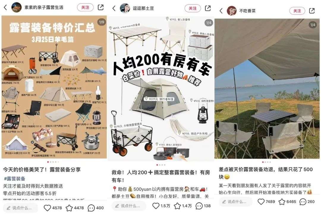 由于露营活动场地的特殊性,参与者很可能会面临一些突发危机,所以大多数人在出行前都会做一个详细的攻略,因此,各种经验交流笔记、装备种草笔记的火爆并不难理解。