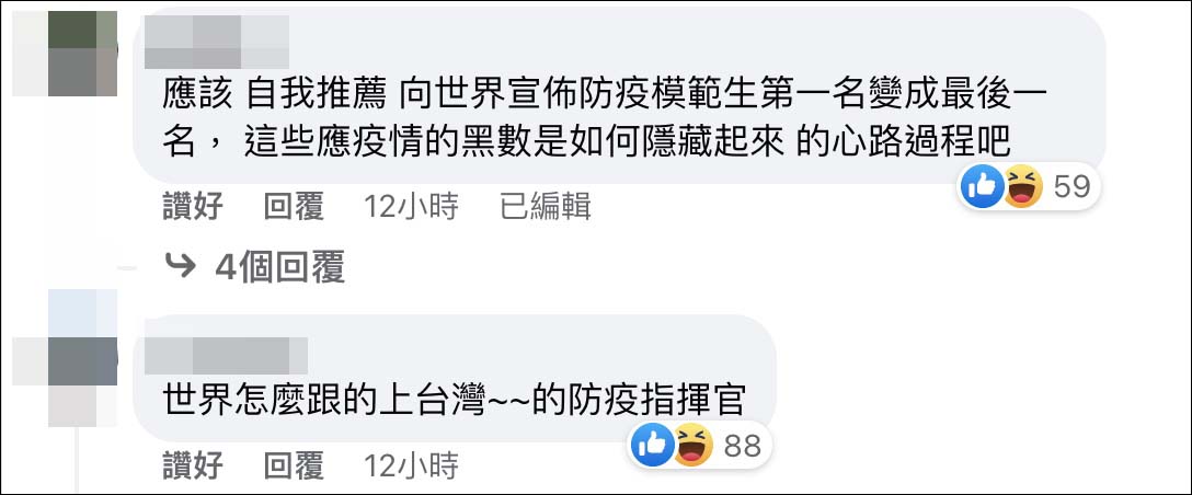 有网民直言,陈时中可能是把标题写错了,应该是“台湾如何成功隐瞒疫情”,“在这一点上,世界怎么跟得上台湾的指挥官”。