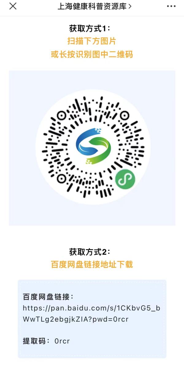 在此次疫情期间,面向一线环境消杀操作人员和广大市民,上海市环境整治消杀专班、市爱卫办会同市疾控中心、市健康促进中心等制订了18个技术规范和指引,推出一系列消毒知识科普材料,这些知识已在“健康上海行动”科普平台——上海健康科普资源库“沪小康”微信公众号正式上线,包含视频、图文等多种形式,可供大家下载学习,具体可以通过以下两种方式获取: