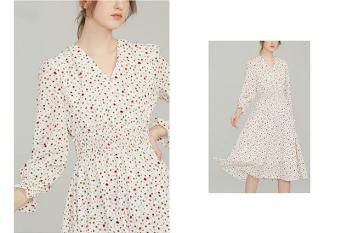 碎花连衣裙是春夏都必须人手一件的,碎花的元素是任时间迭代都不会过时的,经典的法式V领,,的修饰了颈部的线条,同面料的包扣设计让整件裙子的雅致格调拉满。最友好的是打揽的松紧腰,包容各种身材,谁说胖女孩就只能穿T恤!
