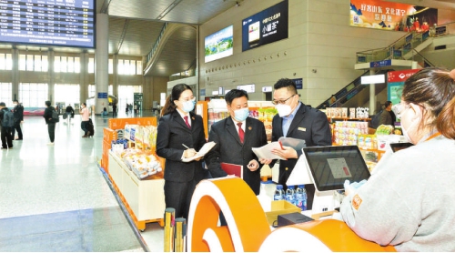 5月13日,济南铁路运输检察院联合铁路食品安全监督管理部门开展食品安全领域行政公益诉讼案“回头看”活动,对站内候车场所餐饮、食品供应和安全保障等情况进行监督。图为该院检察官与铁路食品安全监督管理人员在济南站候车室餐饮摊点走访调研。记者卢金增 通讯员米山摄