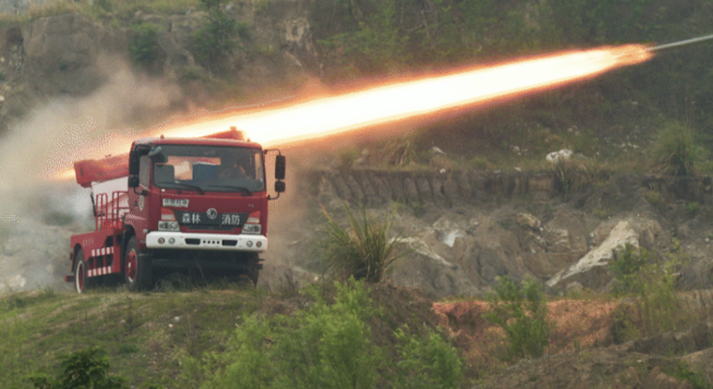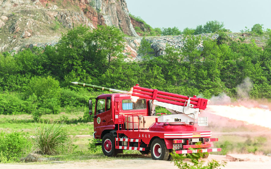 火箭式远距离森林灭火系统采用自动操瞄、火箭弹道修正、火箭弹爆破撒布等一系列关键核心技术,可单次齐射24发灭火弹,射程1至3公里,单次齐射灭火面积达2000平方米,通过远距离对火势压制、隔离,有效解决一般灭火设备人员抵达火场困难、近距离灭火危险性高、灭火原料补给困难、使用维护成本高等行业痛点,被誉为远距森林灭火“杀手锏”装备。