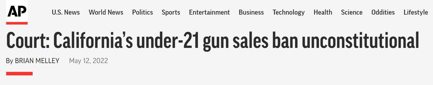 △据美联社报道,美国联邦第九巡回上诉法院11日裁定加州此前出台的一项控枪法律“违宪”。