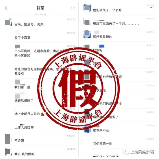 经核实,网传聊天记录为谣言。5月17日,上海市公安局官方微博@警民直通车-上海发布警情通报称,卢某(男,39岁)于5月16日至环球港华润万家超市购物。当日下午,其为博人眼球,凭空编造“超市被政府强迫营业,管理混乱、遍地污物”等谣言,并在一微信群中发布,导致该谣言迅速扩散,造成恶劣社会影响。5月17日,卢某因虚构事实扰乱公共秩序的违法行为被普陀警方依法处以行政处罚。