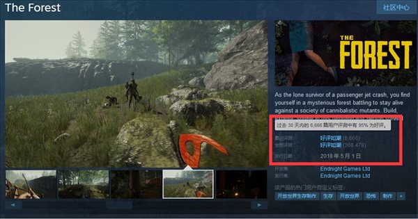 《森林》是一款描述因为空难而迷失在丛林里的幸存者主角,如何在丛林里生存和如何在野人的进攻下免遭伤害的游戏。游戏支持四人联机,与好友开黑游玩会有不同的游戏体验。不过目前史低优惠活动已结束,对本作感兴趣的玩家可以再等等。