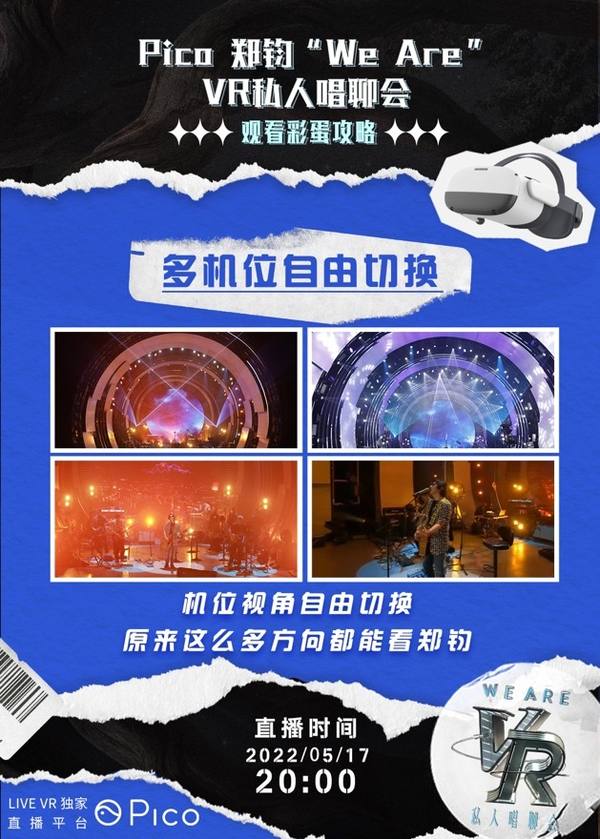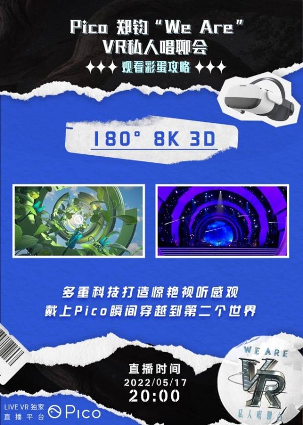 今天20:00,Pico 郑钧“We Are”VR私人唱聊会将于Pico视频独家直播。唱聊会将采用8K3DVR实时交互直播的方式,通过实景与互动场的无缝衔接,打破虚实边界为观众呈现一个360°浸入式舞美体验的舞台。除此之外唱聊会中独家打造的“树洞”分享场,也将带给线上观众与郑钧“零距离”对话的机会,真正做到唱聊会与“我”有关。《灰姑娘》《私奔》《赤裸裸》等10首歌曲连唱,还伴随着定制化的8套舞美特效皮肤,惊喜满满......此次唱聊会诸多亮点,你最期待哪一个?