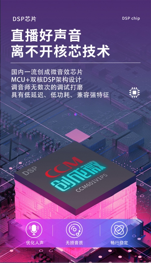 · 国内一流CCM音效处理芯片,MCU+双核架构设计