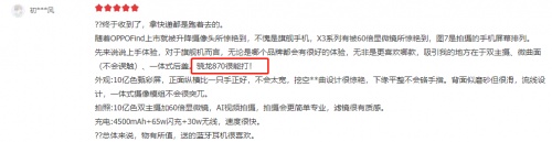 根据相关的口碑评价可以看到,不少用户对OPPO Find X3的屏幕以及芯片都给出了极高的好评率,针对OPPO Find X3所采用的高通骁龙870处理器,大多数消费者也都给予了正面的评价,虽然性能没有骁龙888处理器那么强,但骁龙870处理器却是大家公认最好一颗CPU芯片,性能、功耗都能兼顾到。