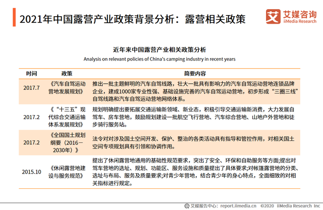 另一方面,据艾媒咨询《2022-2025年中国露营经济发展前景与商业布局分析报告》,从2015-2017年,中国政府出台了多项露营产业相关政策,对露营产业的发展起到重要的推动作用。