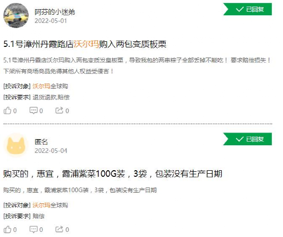 2022年5月,多家媒体报道,沃尔玛公然篡改啤酒保质期,尽管事后沃尔玛回应称发生在生产环节,并已作下架处理,但造成了恶劣影响,至今仍未消除;