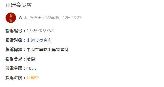 有在山姆会员店的牛肉卷里吃出异物塑料差点卡破喉咙的,有在山姆全球购买的奶粉漏气爆罐拒绝赔付的,有在沃尔玛买到变质食品与过期食物的……不一而足