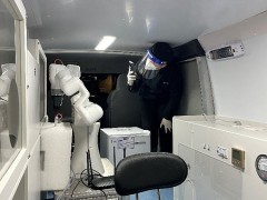 闫维新介绍,小小一台车内大有乾坤。其中一共包括四大部分:一是改装的采样车,其中包含了与采样相关的设施、机电系统、冰箱、气压控制系统;其二,双臂机器人,来自节卡机器人公司的机械双臂协作完成采样、拧管等一系列工作;其三,消杀系统,采样前后进行整体的消杀处理;其四,大数据系统,包括扫码、采样,以及之后每个标签和人的一一对应,以形成的大数据存储。