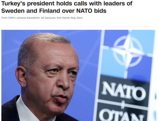 CNN称,埃尔多安表示,他在通话告诉芬兰总统尼尼斯托,“忽视对北约盟国构成威胁的恐怖组织的了解,这与友谊和联盟精神是不相容的。”