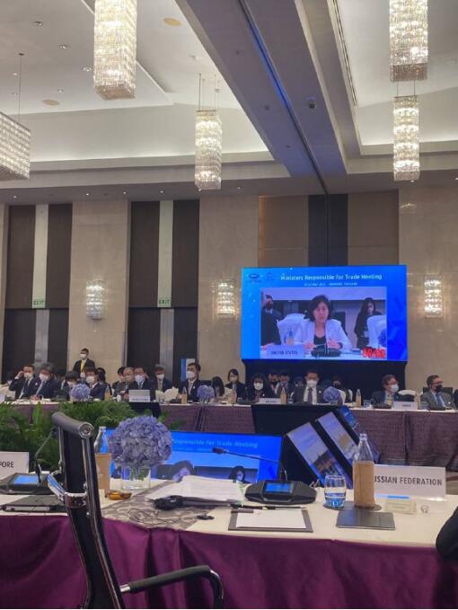 为期两天的亚太经济合作组织(APEC)贸易部长会议5月21日在泰国曼谷拉开帷幕。会议重点探讨稳定供应链、应对气候变化、数字转型等国际贸易新问题。据俄媒报道,俄经济发展部长列舍特尼科夫在会上发言时,遭美加等5国官员的离席抗议,随后,俄方代表也在美国代表发言时离席。