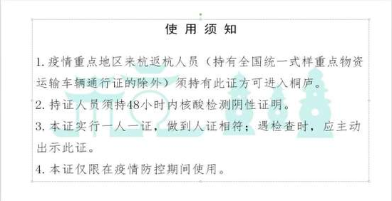 记者注意到,杭州桐庐、富阳、建德等地已实行报备证制度:疫情中高风险及重点疫情地区来返人员,须持《报备证》方可来返。且此类人员隔离费用由隔离对象自行承担。
