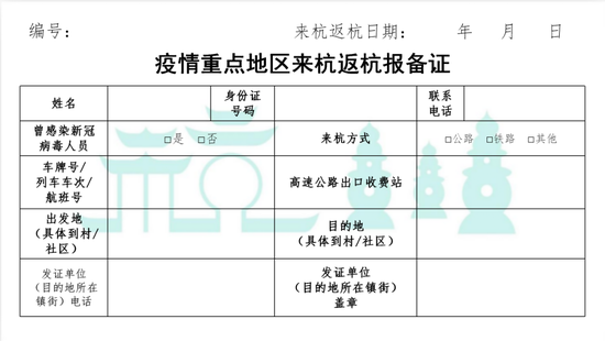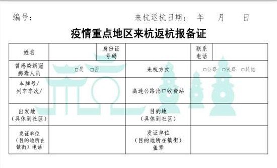 附件1:疫情重点地区来杭返杭报备证