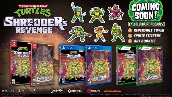 根据Limited Run Games官方推特发布的消息,今年的LRG3活动上,他们将展示玩家期待的《忍者神龟:施莱德的复仇》实体收藏版。从官方公布的图片中可以看到,所有收藏版都包括:双面游戏包装封面、像素角色贴纸及书签。
