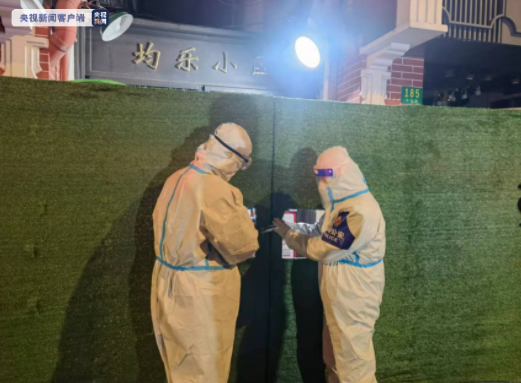 总台记者 梁志玮:现在是4月1日凌晨2时30分,再过半个小时整个浦西就将进入封闭管理的状态了,我们现在所在的地点就是浦西一个小区的门口,就在刚刚公安的同志是已经对小区进行了封闭的动作,可以看到小区的外围是已经用绿色的挡板给封闭起来了,再往前来看一下,从早上开始这个小区也将开始新一轮全员的核酸了,可以看到目前这样的标识已经贴出了,请保持2米的间隔,浦西这边新一轮的核酸检测也将从1日的早上开始。