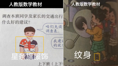 而网友还吐槽这些插画存在导向问题,如小朋友衣服有星条旗图案,五星红旗画反了、女生脚上有疑似文身……