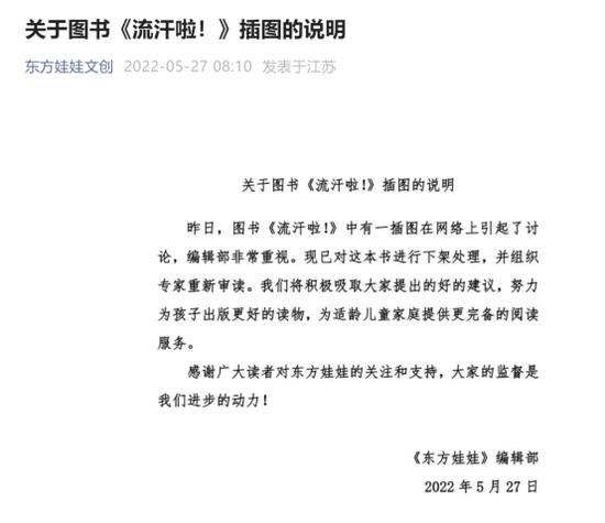 对此,《东方娃娃》编辑部今天发表说明,表示对这本书进行下架处理,并组织专家重新审读。