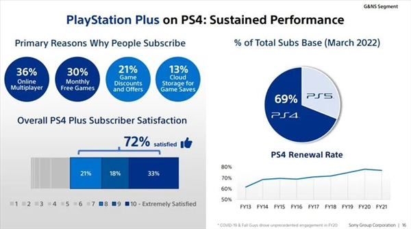 索尼PS Plus新订阅服务在本周正式上线,不过有玩家发现,高级会员的经典游戏库游戏数量并没有索尼当初宣传的那么多,此外还发觉索尼偷改了宣发物料,一系列操作让不少人在社媒吐槽新服务太亏。不过在索尼眼中似乎情况是反过来的,官方近日公布了PS Plus服务用户调查,有7成玩家表示满意。