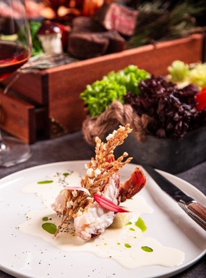 为庆祝罗宾斯牛排馆再次上榜黑珍珠指南,主厨Roy特别推出黑珍珠甄选套餐,盛邀宾客共同庆祝。黑珍珠甄选套餐为七道式西式套餐,包括餐前面包,沙拉吧,汤品,热前菜,主菜,清新爽口的雾都冰霜,以及精致的西式甜点,咖啡或茶。主厨特别选取松针熏香慢炖澳大利亚小老饕作为主菜。小老饕牛排是识货、懂吃、会品的资深饕客不可错过的牛排。罗宾斯牛排馆的主厨Roy说:“一块优质上乘的牛肉,不仅看它的等级,它的油花,更看重的是它的色泽和肉软程度,以及针对不同部位如何采取不同的处理方式。”小老饕是从澳洲和牛小排部位小心的分切下的盖肉部位,形状细长如眉毛,是牛小排上的精华,其大理石油脂分布均匀,肉质鲜甜,肉汁满溢。罗宾斯牛排馆选用的小老饕部位可谓是和牛上最稀缺的肉质。小老饕通过36小时低温慢炖,配以云南黑松露酱汁,用松针熏香技法锁住和牛的肉汁,激发肉质的香嫩。宾客也可选择与钟爱的红酒搭配,尽享美食美酒。