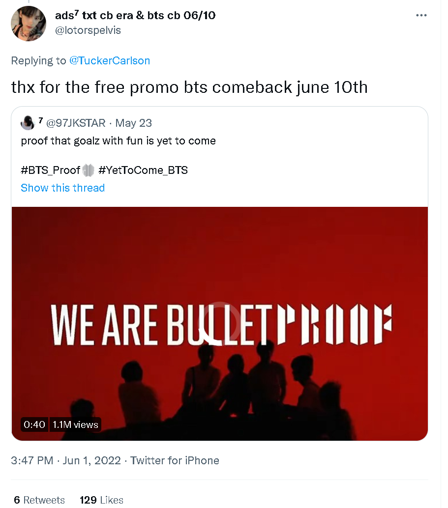但卡尔森并不了解的是,作为一个韩国偶像团体,而且还是在世界不少韩国流行文化受热捧的国家拥有大量粉丝的偶像团体,“防弹少年团”拥有着大量“战斗力极强”的粉丝团体。这些自称为“ARMY”的“防弹少年团”粉丝团体——还与许多韩国其他偶像团体的粉丝一样——经常可以通过“人力刷帖”的方式,就让自己的偶像和相关话题“占领”某个帖文或话题的整个评论区,实现“屠版”或“霸榜”的效果。