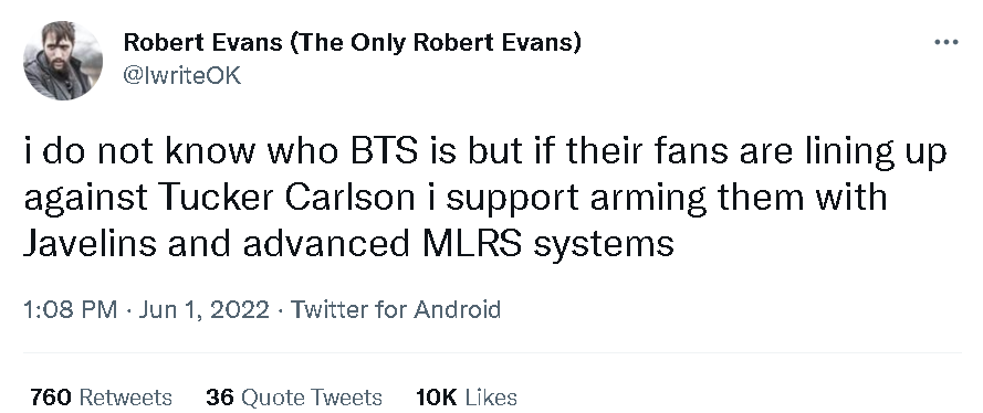 但这种“违和感”恰恰是韩美关系的一个特色,而且恐怕也是“防弹少年团”的部分粉丝不希望去抨击卡尔森,也不希望自己的偶像卷入美国国内政治斗争的另一个重要原因。毕竟,如果真要和卡尔森撕下去,这些粉丝可能会发现卡尔森许多招骂的观点,与让尹锡悦赢得大选的那些观点不仅是高度相似的,甚至会发现只有这样的一个韩国,才会与美国更加紧密地合作——而这又是拜登乐于看到的……