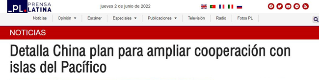 古巴拉美社 报道指出,中国在发展同太平洋岛国关系上倡导和平、发展、公平、正义、民主、自由的全人类共同价值观,并积极与太平洋岛国在商贸往来、教育合作以及基础设施建设等领域加强合作。