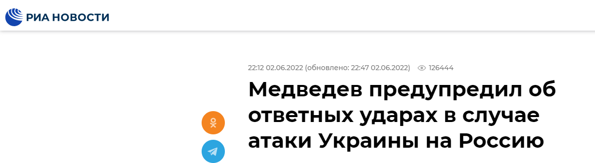 【环球网报道】美国日前宣布向乌克兰提供价值7亿美元的新一轮安全援助,包括“海马斯”高机动火箭炮系统等。综合俄罗斯塔斯社、俄新社6月2日报道,俄罗斯联邦安全会议副主席梅德韦杰夫在接受卡塔尔半岛电视台采访时警告称,如果乌克兰使用美国提供的武器攻击俄罗斯领土,那么除了打击乌克兰武装部队总参谋部、国防部等决策中心外,俄方将别无选择。