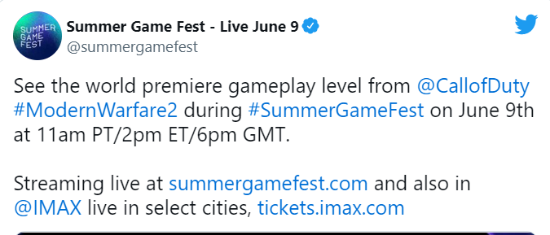 由IW组打造的《使命召唤:现代战争2》此前于4月末公布了新作的Logo,据了解开发者计划的人士透露,《使命召唤:现代战争2》将与《战区》的全新地图一起发布。官方在日前公布了游戏先导预告,随后夏日游戏节表示,该作将会在6月10日的活动中带来实机关卡演示。