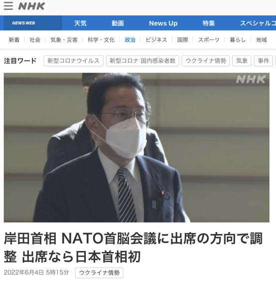 不过,NHK称,与G7不同,日本并不是北约成员国。鉴于此,岸田将根据参议院选举情况等审时度势,就是否出席做出最终判断。
