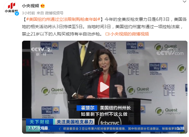 今年的全美反枪支暴力日是6月3日,美国各地的相关活动将从3日持续至5日。当地时间3日,美国纽约州宣布通过一项控枪法案,禁止21岁以下的人购买或持有半自动步枪。