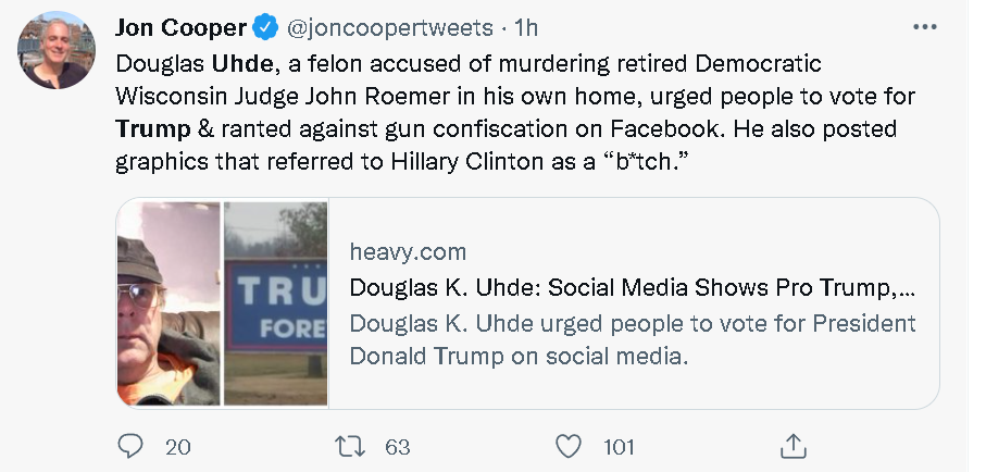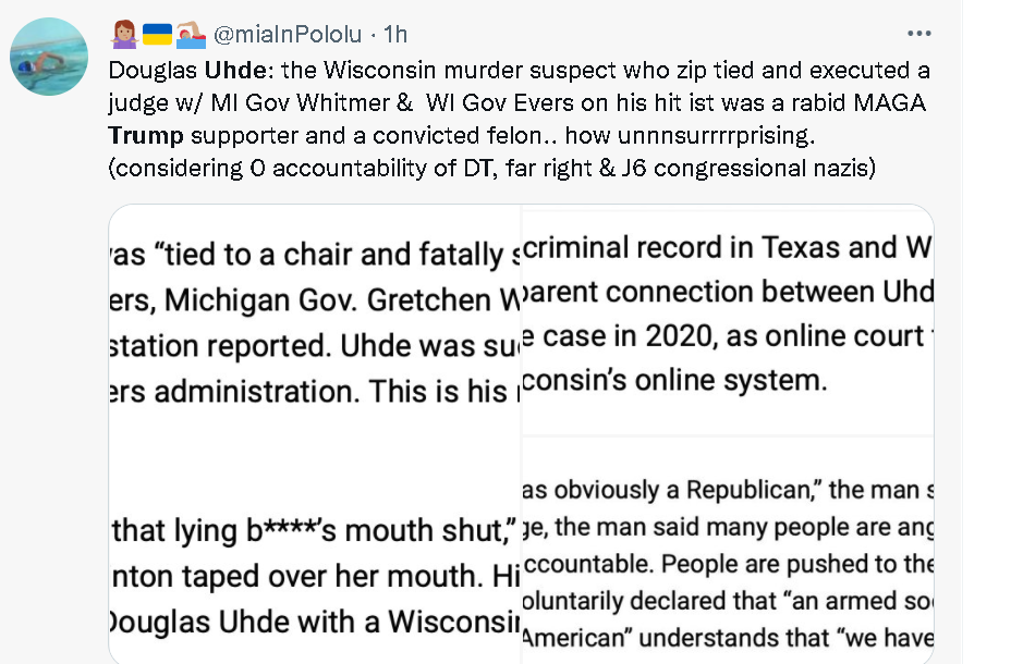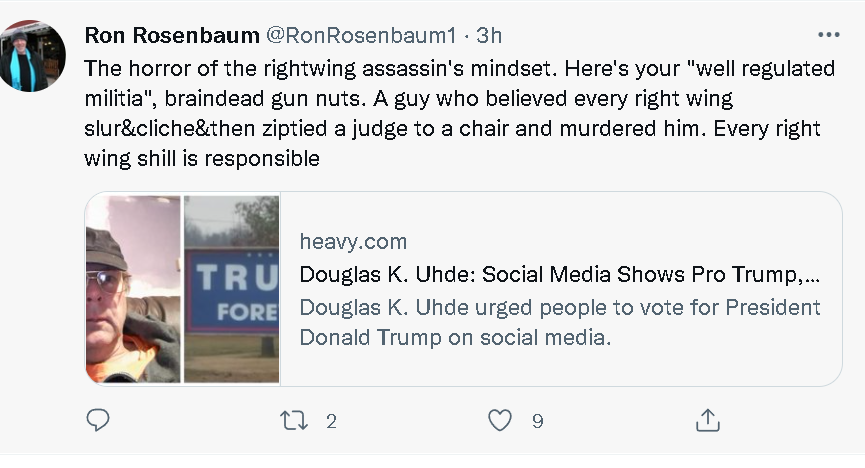 因此,一些围观此事的美国网民就怀疑乌达是在搞政治刺杀,想杀掉所有反对特朗普的人,甚至称他为“恐怖分子”。