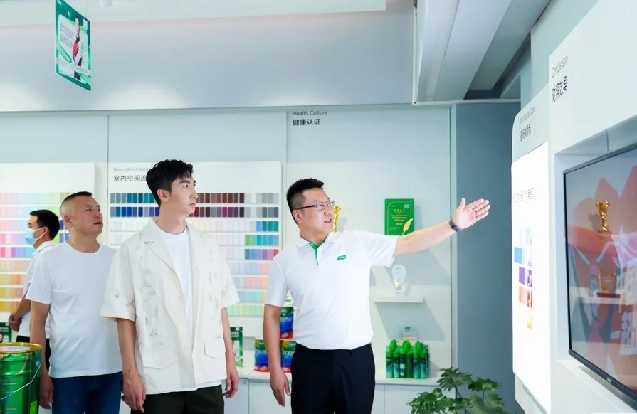此外,作为更懂浪漫生活的趣味涂料,星空漆的多款潮流色彩可以吸光蓄能,夜晚放出浪漫光彩。投影漆则更好地满足投影色彩需求,用真实色彩还原沉浸式的视觉体验。三棵树装修漆产品部副总监梁建鹤向武大靖介绍了三棵树趣森活投影漆如的产品性能,武大靖十分惊喜,作为影迷的他已经打算为新家涂刷投影漆,希望感受更畅快的居家观影体验。