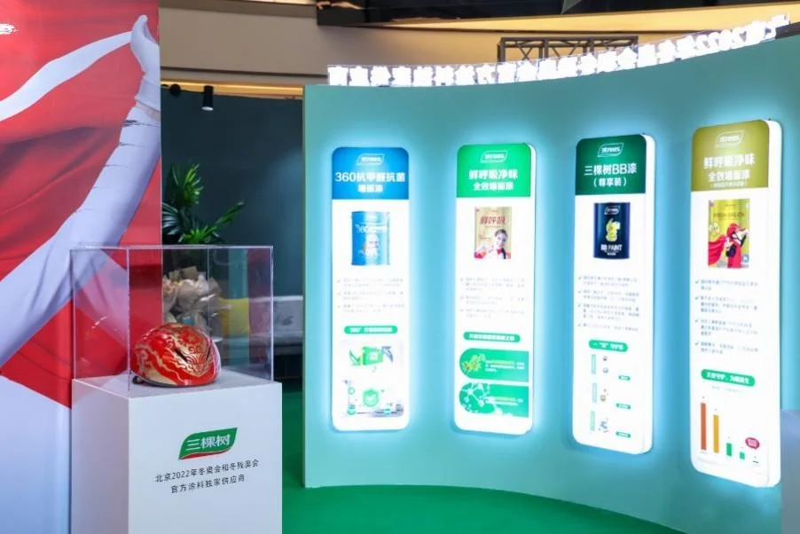 活动中,三棵树冬奥故事成就展中展出了三棵树专为合作伙伴短道速滑国家队研发、设计了头盔涂料和图案,打造出的系列“出色”头盔。三棵树兑现绿色办奥承诺,参与“雪如意”等10多个重要冬奥赛事场馆和配套工程的建设,用特制的奖牌保护涂料涂刷的奖牌,实现了“自家奖牌放心咬”的系列冬奥故事,在继续弘扬传承着冬奥精神的同时,铭记民族涂料助力大国工程的成功荣耀。
