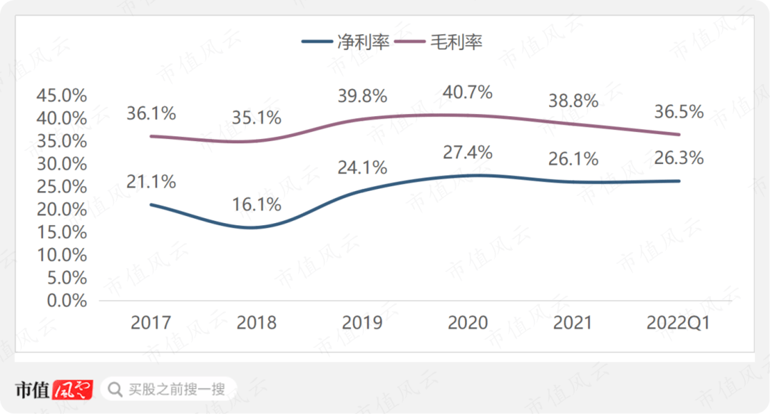 以2021年数据为例,公司毛利率为38.8%,而销售净利率高达26%左右,远超行业内大部分上市公司,是一个值得研究的标的。