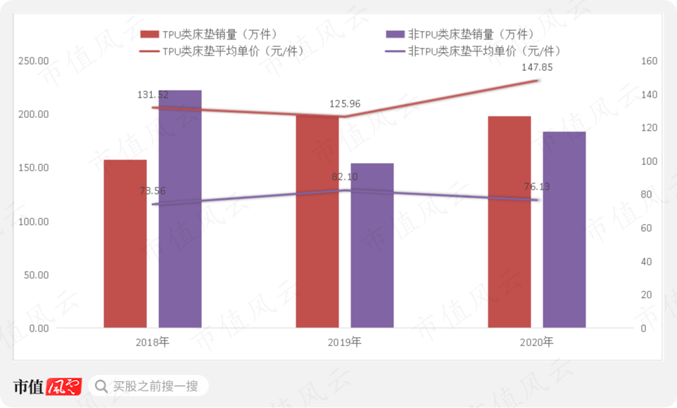 公司充气床垫主要分为TPU类和非TPU类,TPU类床垫具有弹性好、强韧、耐磨、耐寒性好、更为环保等优越特性,2020年提价明显。从充气床垫产品结构来看,TPU类床垫具备提价空间,且销量整体向上,对整体业绩贡献较大。