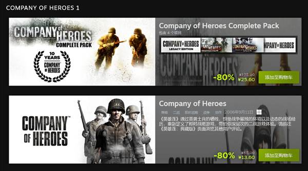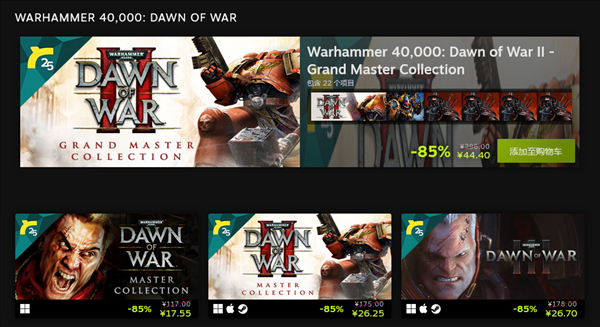 部分特惠价格:《英雄连2》两折13.6元、《英雄连》两折13.6元、《战锤40K:战争黎明2》Grand Master合集1.5折44.4元,《战锤40K:战争黎明3》1.5折26.7元。