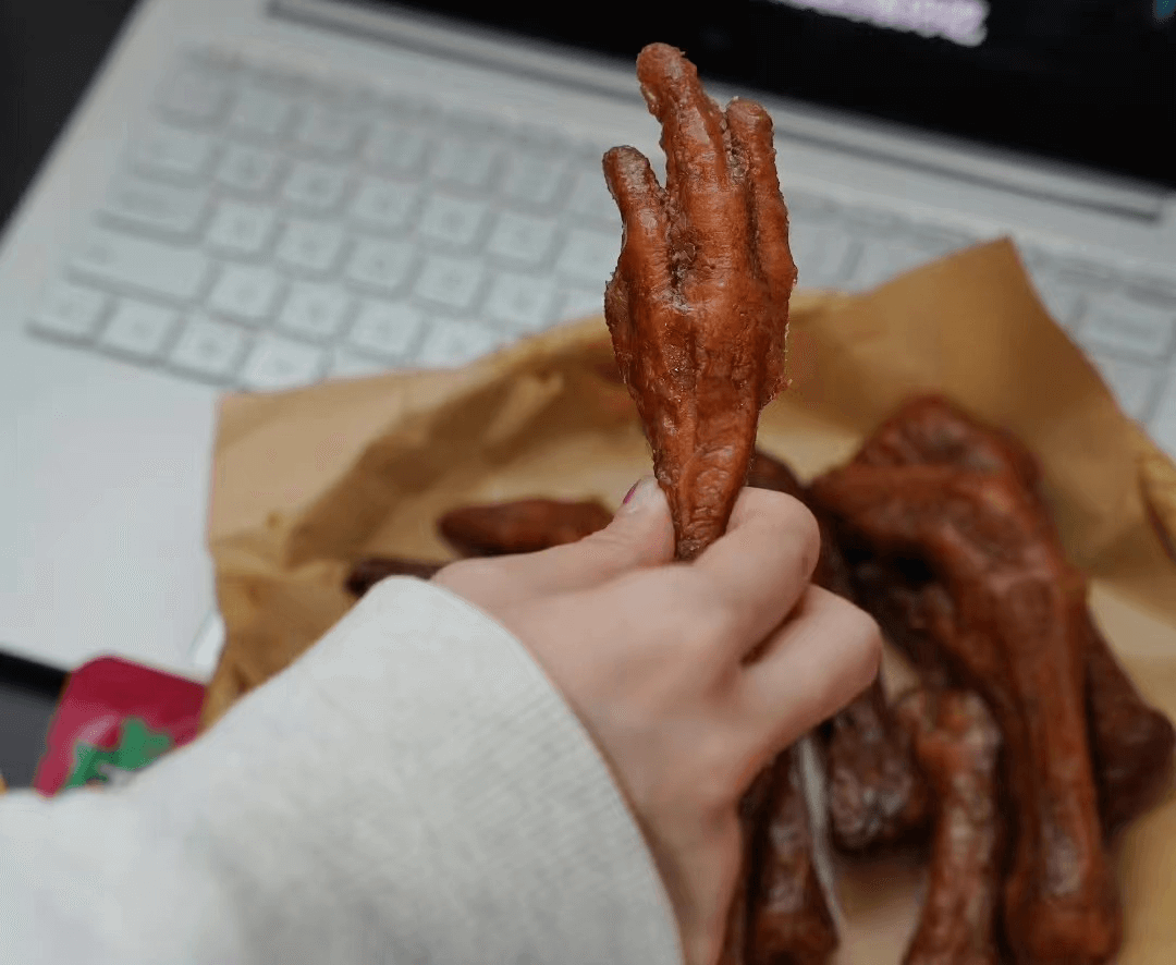 隔天,Joanne又收到了卤味代工店的快递包裹,她兴奋地开箱试吃,却在尝了一两个凤爪之后觉得十分腻味。