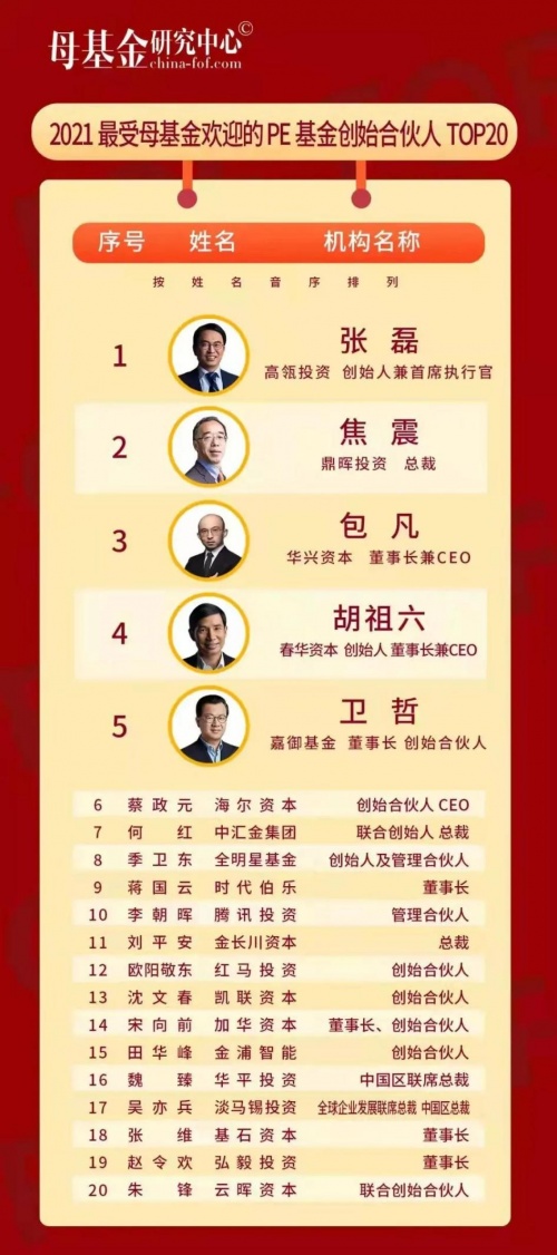 近日,母基金研究中心根据私募股权行业数据与研究分析,正式发布了2021年度榜单。在榜单中,凯联资本荣获“2021最佳PE基金TOP30”奖项、凯联资本沈文春先生荣获“2021最受母基金欢迎的PE基金创始合伙人TOP20”奖项,充分说明了凯联资本在过去一阶段投资布局带来的回报获得了市场的高度认可!
