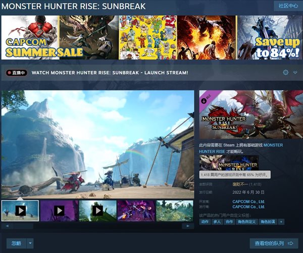 《怪物猎人崛起(MonSTER HUNTER RISE)》G位大型拓展“曙光(SUNBREAK)”在上周正式发售,目前游戏在Steam总体评价“褒贬不一(65%好评率)”。不过玩家对游戏的差评都集中在崩溃卡死等问题,游戏内容方面还是颇受好评的。