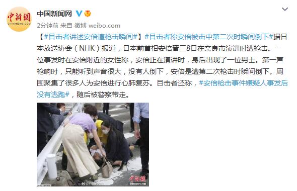 本文标题: 目击者讲述安倍遭枪击瞬间:嫌疑人事发后没有逃跑