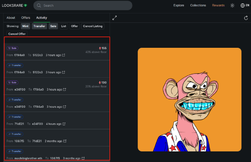 据报道,该NFT从周杰伦地址转出,很快以111ETH、130ETH、155ETH的价格多次交易。目前,1ETH的价值约为2万元人民币,周杰伦被盗的NFT价值超过300余万元。