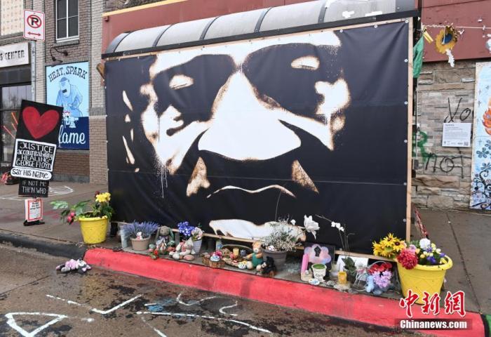 图为弗洛伊德遭警察“跪压”的事发地,如今由民间自发形成了一片纪念园地。中新社记者 陈孟统 摄