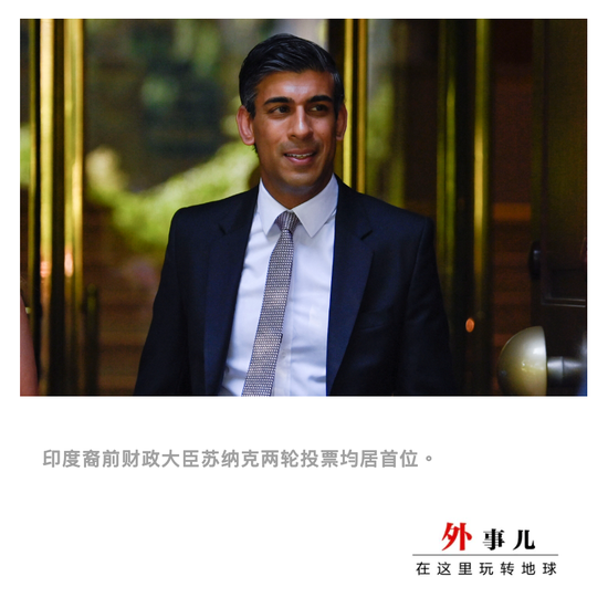 实际的局面可能更为复杂。前两轮投票中均排在首位的是前财政大臣、具有印度血统的里希·苏纳克(Rishi Sunak)。紧随其后的是两位女性候选人——英国贸易大臣佩妮·莫当特(Penny Mordaunt)和外交大臣丽兹·特拉斯(Liz Truss),其中莫当特是民调机构预测的胜选人,特拉斯也获得多位保守派重磅人物的支持。