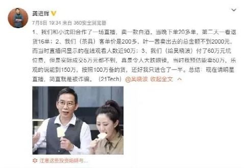 10月25日,有媒体曝光,李佳琪和罗永浩的直播间销售额分别为215亿元和2.1亿元,但立即被李佳琪和罗永浩利用“数据不实”,“商业机密”否认。